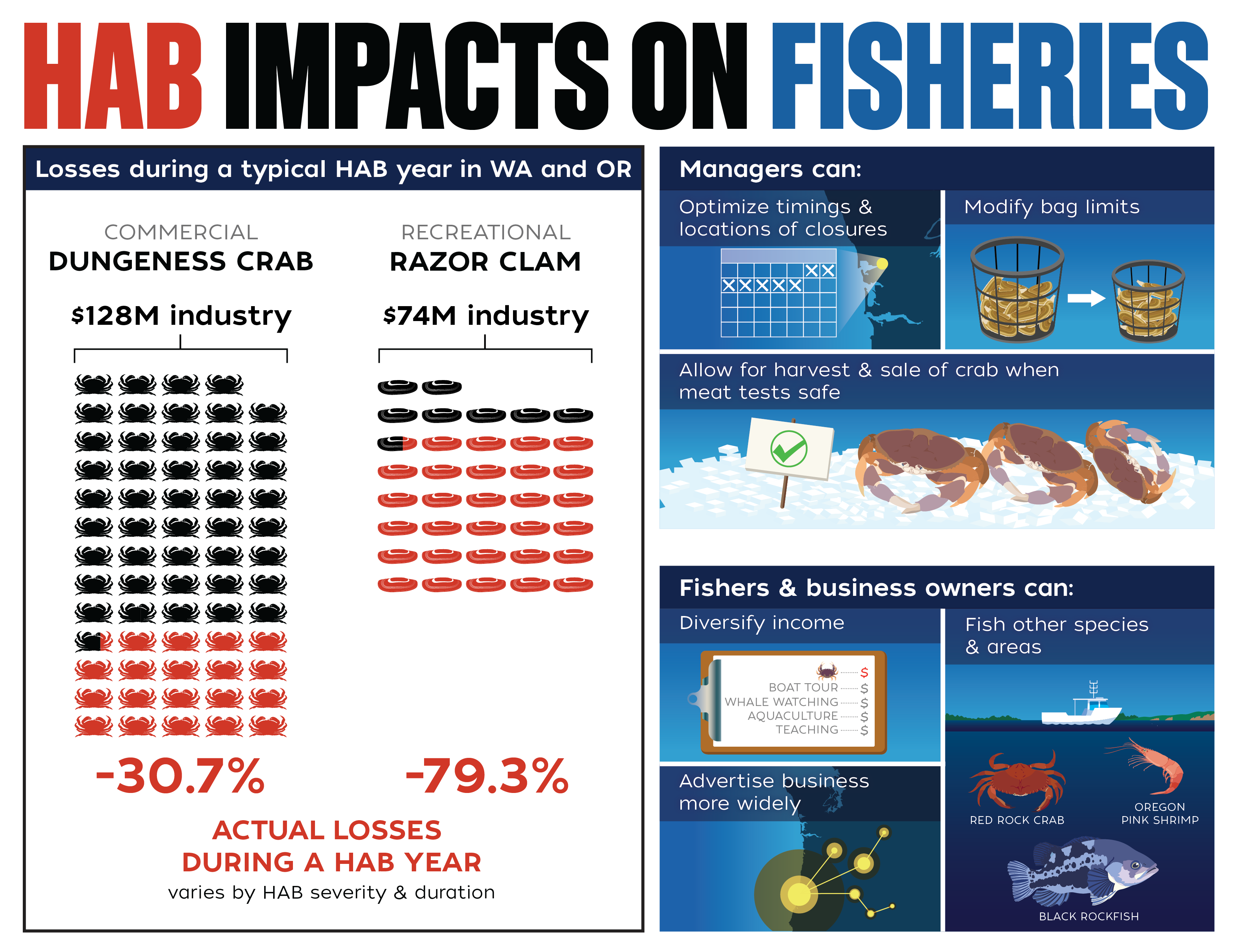 Illustrations by Charin Park ©WHOI Creative. Funding for the project was made available through award NA20NOS4780189 of the NOAA FY 2020 National Competitive Harmful Algal Blooms Programs HAB Socioeconomics Notice of Funding Opportunity