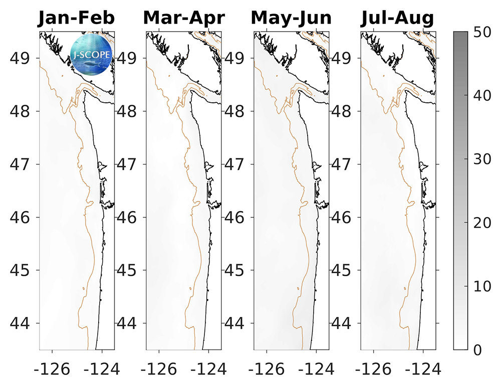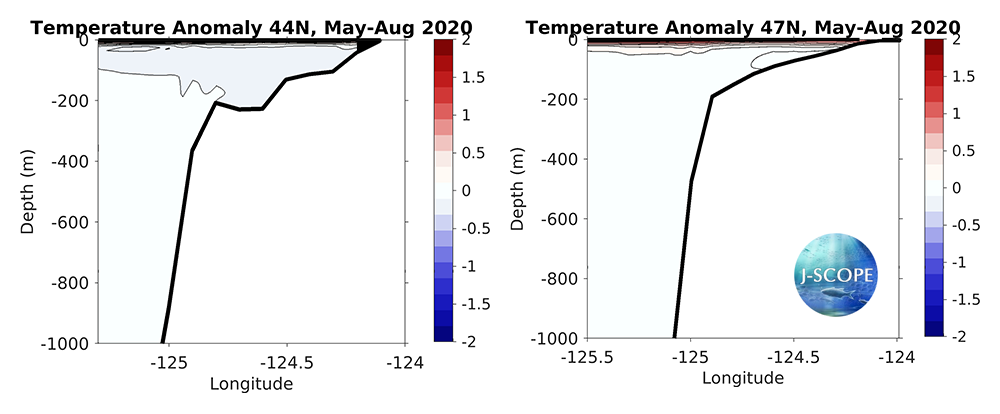 We note that the NANOOS Climatology App shows that the NDBC buoys along the Washington and Oregon shelf are recording sea surface temperatures warmer than the long-term averages since the start of 2020.