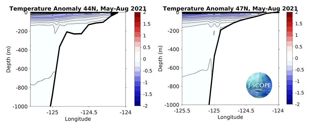 We note that the NANOOS Climatology App shows that the NDBC buoys along the Washington and Oregon shelf are recording sea surface temperatures near or slightly lower than the long-term averages during spring 2021.