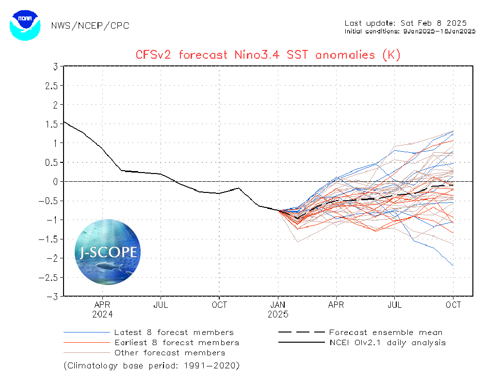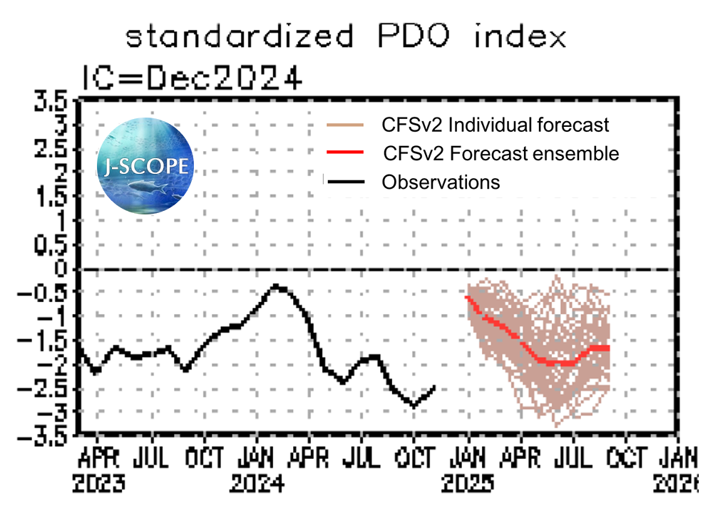 - Pacific Decadal Oscillation: The January 2025 CFS forecast predicts persistent negative PDO phase through the autumn of 2025.